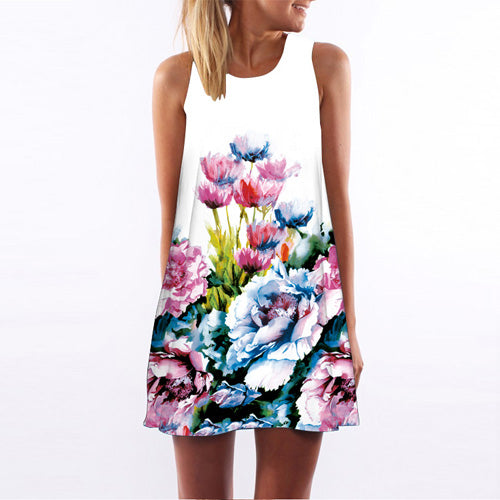 2018 Summer Dress Women Floral Print Chiffon Dress Sleeveless Boho Style Short Beach Dress Sundress Casual Shift Dresses Vestido